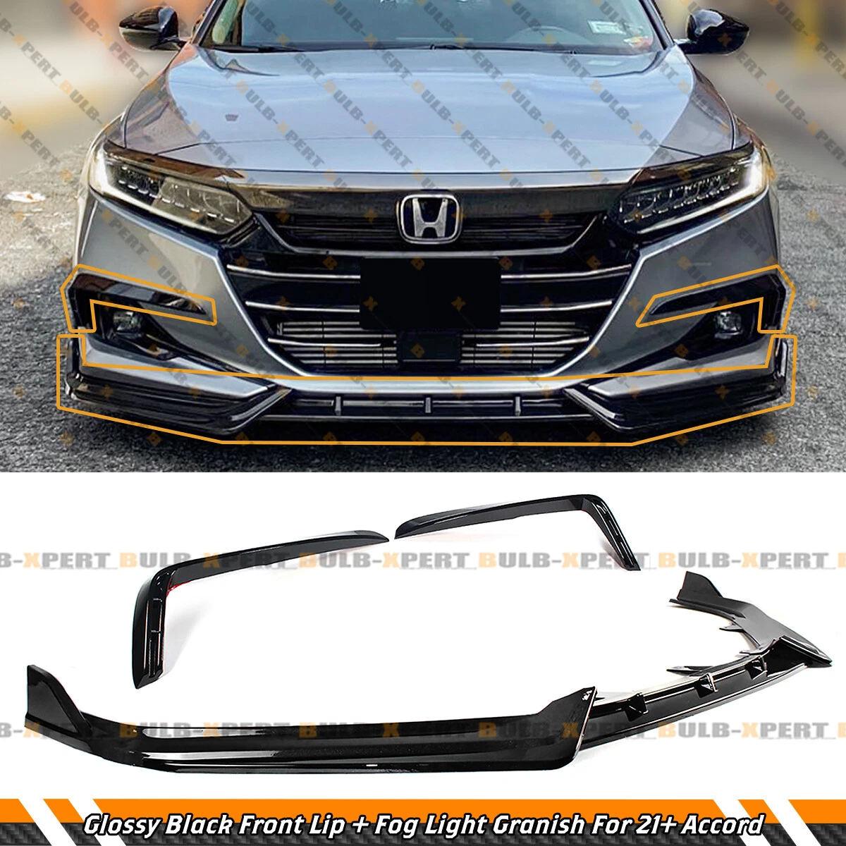 For 21 22 Accord V1 3pc Gloss Black Front Bumper Lip Fog Lamp Upper Garnish Trim Ebay