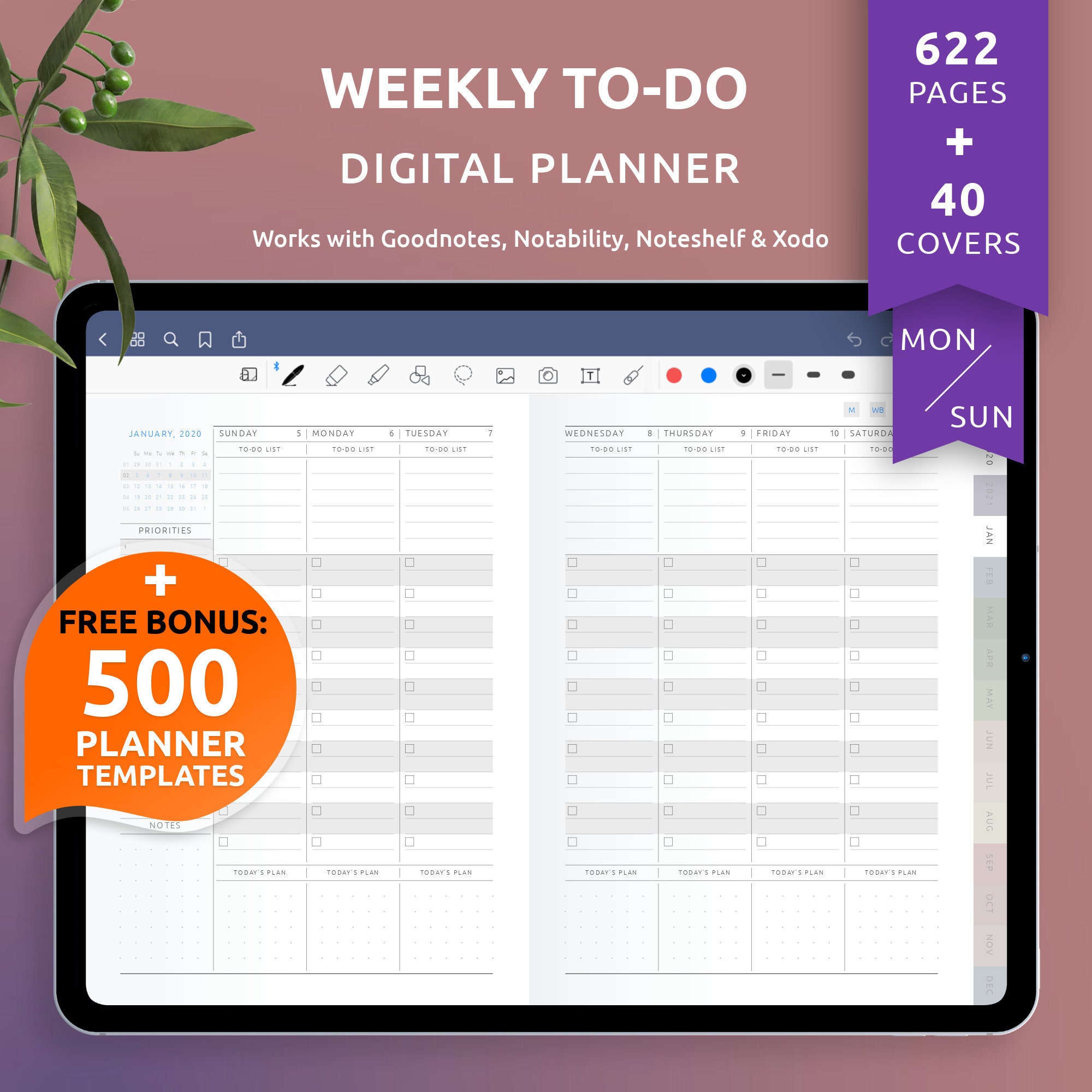 Digital Weekly To Do Planner For Goodnotes Notability Weekly Etsy
